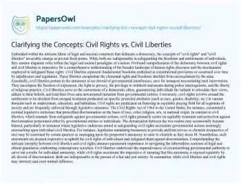 Clarifying the Concepts: Civil Rights vs. Civil Liberties. (2024, Apr 01). Retrieved from https://hub.papersowl.com/examples/clarifying-the-concepts-civil-rights-vs-civil-liberties/