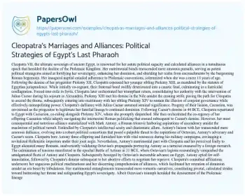 Cleopatra's Marriages and Alliances: Political Strategies of Egypt's Last Pharaoh. (2024, May 21). Retrieved from https://hub.papersowl.com/examples/cleopatras-marriages-and-alliances-political-strategies-of-egypts-last-pharaoh/