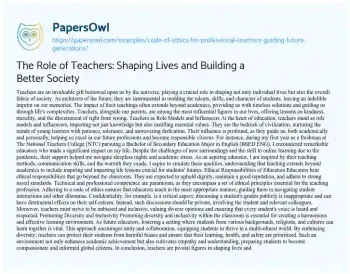 The Role of Teachers: Shaping Lives and Building a Better Society. (2023, Jun 19). Retrieved from https://hub.papersowl.com/examples/code-of-ethics-for-professional-teachers-guiding-future-generations/