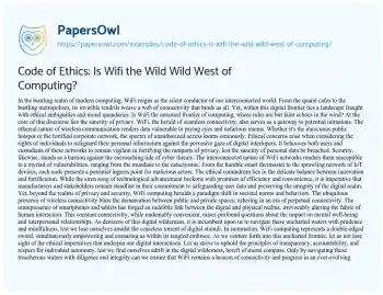 Code of Ethics: Is Wifi the Wild Wild West of Computing?. (2024, Apr 29). Retrieved from https://hub.papersowl.com/examples/code-of-ethics-is-wifi-the-wild-wild-west-of-computing/