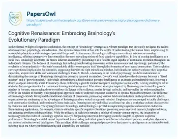 Cognitive Renaissance: Embracing Brainology's Evolutionary Paradigm. (2024, Feb 20). Retrieved from https://hub.papersowl.com/examples/cognitive-renaissance-embracing-brainologys-evolutionary-paradigm/