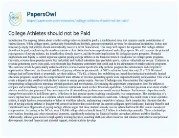 This essay will further argue against the payment of college athletes, emphasizing the educational focus of colleges, the benefits athletes already receive, and the complexities of implementing payment systems. More free essay examples are accessible at PapersOwl about College.