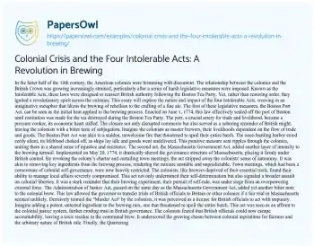 Colonial Crisis and the Four Intolerable Acts: A Revolution in Brewing