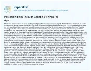 This essay explores the key aspects of postcolonialism while focusing on Chinua Achebe's seminal novel, "Things Fall Apart," as a representation of postcolonial literature.