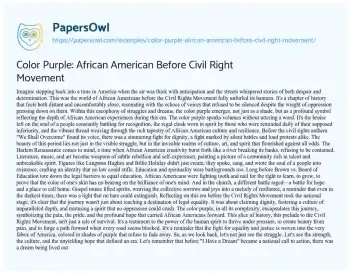 Color Purple: African American Before Civil Right Movement. (2024, Apr 14). Retrieved from https://hub.papersowl.com/examples/color-purple-african-american-before-civil-right-movement/