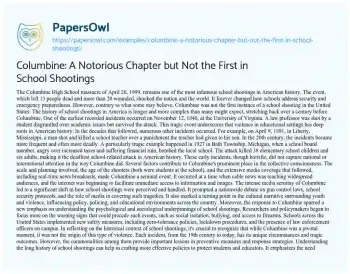 Columbine: A Notorious Chapter but Not the First in School Shootings. (2024, May 12). Retrieved from https://hub.papersowl.com/examples/columbine-a-notorious-chapter-but-not-the-first-in-school-shootings/