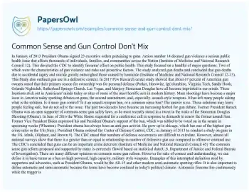 A provocative piece, this essay challenges the notion that ‘common sense’ gun control measures are straightforward solutions. It argues that the issue is far more complex than popular narratives suggest. PapersOwl offers a variety of free essay examples on the topic of Gun topic.