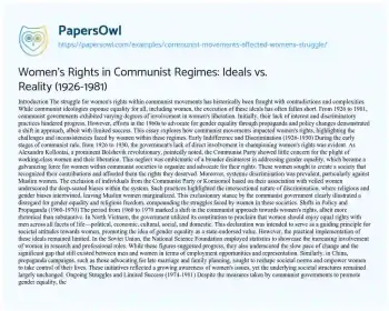 This essay explores how communist movements impacted women's rights, highlighting the challenges and inconsistencies faced by women within these regimes.