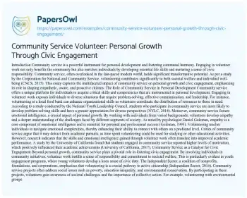 Community Service Volunteer: Personal Growth Through Civic Engagement. (2024, Dec 27). Retrieved from https://hub.papersowl.com/examples/community-service-volunteer-personal-growth-through-civic-engagement/