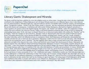 Literary Giants: Shakespeare and Miranda. (2020, Jan 18). Retrieved from https://hub.papersowl.com/examples/compare-and-contrast-of-william-shakespeare-and-lin-manuel-miranda/
