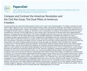 Compare and Contrast the American Revolution and the Civil War Essay: The Dual Pillars of American Freedom. (2023, Sep 12). Retrieved from https://hub.papersowl.com/examples/compare-and-contrast-the-american-revolution-and-the-civil-war-essay-the-dual-pillars-of-american-freedom/