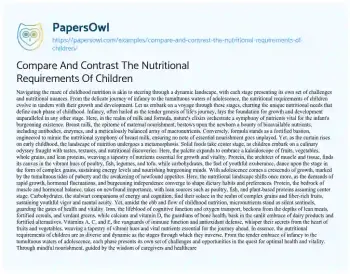 Compare And Contrast The Nutritional Requirements Of Children. (2024, Apr 07). Retrieved from https://hub.papersowl.com/examples/compare-and-contrast-the-nutritional-requirements-of-children/