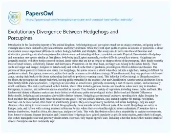 Evolutionary Divergence Between Hedgehogs and Porcupines. (2021, May 10). Retrieved from https://hub.papersowl.com/examples/compare-and-contrast-two-similar-animals/