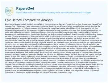 This essay will explore the similarities and differences between King Hrothgar and King Odysseus, focusing on their leadership qualities, the challenges they face, and the legacies they leave behind.