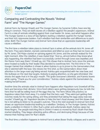Comparing and Contrasting the Novels "Animal Farm" and "The Hunger Games". (2023, Feb 08). Retrieved from https://hub.papersowl.com/examples/comparing-and-contrasting-the-novels-animal-farm-and-the-hunger-games/