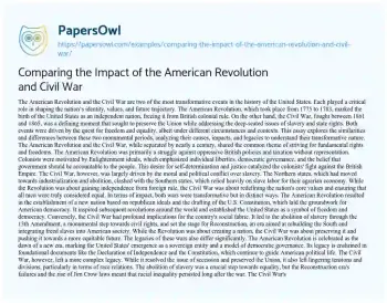Comparing the Impact of the American Revolution and Civil War. (2025, Mar 30). Retrieved from https://hub.papersowl.com/examples/comparing-the-impact-of-the-american-revolution-and-civil-war/