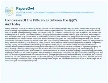 Comparsion Of The Differences Between The 1950's And Today. (2024, Apr 22). Retrieved from https://hub.papersowl.com/examples/comparsion-of-the-differences-between-the-1950s-and-today/