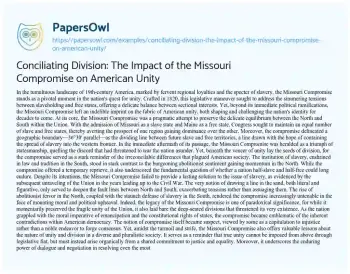 Conciliating Division: The Impact of the Missouri Compromise on American Unity. (2024, Jun 01). Retrieved from https://hub.papersowl.com/examples/conciliating-division-the-impact-of-the-missouri-compromise-on-american-unity/