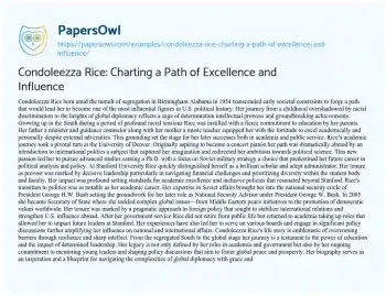 Condoleezza Rice: Charting a Path of Excellence and Influence. (2024, Jul 06). Retrieved from https://hub.papersowl.com/examples/condoleezza-rice-charting-a-path-of-excellence-and-influence/