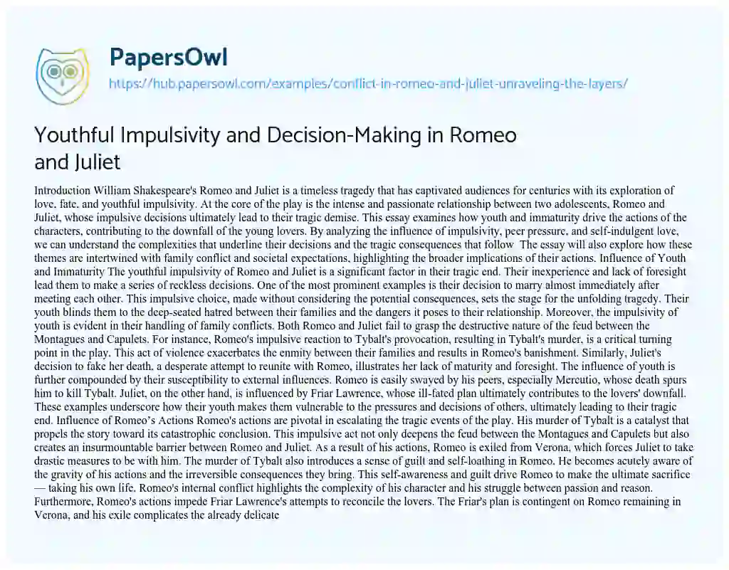 Youthful Impulsivity and Decision-Making in Romeo and Juliet. (2023, Jun 22). Retrieved from https://hub.papersowl.com/examples/conflict-in-romeo-and-juliet-unraveling-the-layers/