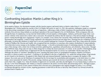 Confronting Injustice: Martin Luther King Jr.'s Birmingham Epistle. (2024, Mar 25). Retrieved from https://hub.papersowl.com/examples/confronting-injustice-martin-luther-king-jr-s-birmingham-epistle/