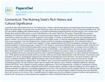 Connecticut: The Nutmeg State's Rich History and Cultural Significance. (2024, Jun 17). Retrieved from https://hub.papersowl.com/examples/connecticut-the-nutmeg-states-rich-history-and-cultural-significance/