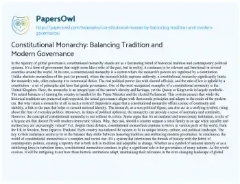 Constitutional Monarchy: Balancing Tradition and Modern Governance. (2024, Jan 26). Retrieved from https://hub.papersowl.com/examples/constitutional-monarchy-balancing-tradition-and-modern-governance/
