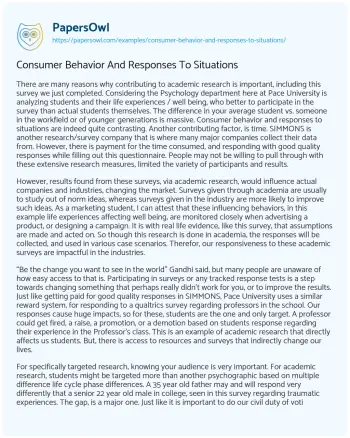 Consumer Behavior And Responses To Situations. (2022, Jun 27). Retrieved from https://hub.papersowl.com/examples/consumer-behavior-and-responses-to-situations/