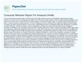 Consumer Behavior Report For Amazons Kindle. (2024, Apr 14). Retrieved from https://hub.papersowl.com/examples/consumer-behavior-report-for-amazons-kindle/