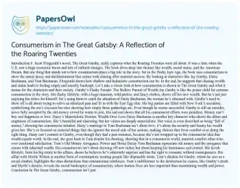 Consumerism in The Great Gatsby: A Reflection of the Roaring Twenties