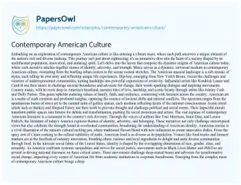 Contemporary American Culture. (2024, Apr 22). Retrieved from https://hub.papersowl.com/examples/contemporary-american-culture/