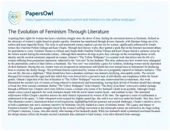 The Evolution of Feminism Through Literature. (2022, Feb 10). Retrieved from https://hub.papersowl.com/examples/control-and-feminism-in-the-yellow-wallpaper/