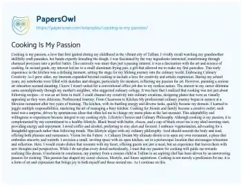 Cooking Is My Passion. (2021, Jul 04). Retrieved from https://hub.papersowl.com/examples/cooking-is-my-passion/