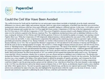 Could the Civil War Have Been Avoided. (2026, Jan 10). Retrieved from https://hub.papersowl.com/examples/could-the-civil-war-have-been-avoided/