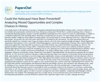 Could the Holocaust Have Been Prevented? Analyzing Missed Opportunities and Complex Choices in History. (2023, Sep 14). Retrieved from https://hub.papersowl.com/examples/could-the-holocaust-have-been-prevented-analyzing-missed-opportunities-and-complex-choices-in-history/