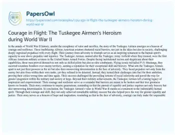 Courage in Flight: The Tuskegee Airmen's Heroism during World War II. (2024, Mar 25). Retrieved from https://hub.papersowl.com/examples/courage-in-flight-the-tuskegee-airmens-heroism-during-world-war-ii/