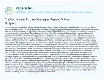 In recent years, the issue of school bullying has ascended to the forefront of educational concerns, spotlighting the urgent need for effective prevention and intervention. This critical discussion explores the multifaceted strategies that schools can implement to combat bullying, ensuring a safe and inclusive environment for all students.