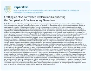 Crafting an MLA-Formatted Exploration: Deciphering the Complexity of Contemporary Narratives. (2024, Jun 01). Retrieved from https://hub.papersowl.com/examples/crafting-an-mla-formatted-exploration-deciphering-the-complexity-of-contemporary-narratives/