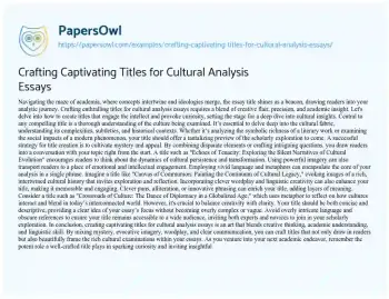 Crafting Captivating Titles for Cultural Analysis Essays. (2024, Apr 22). Retrieved from https://hub.papersowl.com/examples/crafting-captivating-titles-for-cultural-analysis-essays/