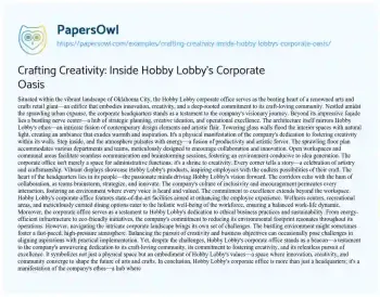Crafting Creativity: Inside Hobby Lobby's Corporate Oasis. (2023, Dec 22). Retrieved from https://hub.papersowl.com/examples/crafting-creativity-inside-hobby-lobbys-corporate-oasis/