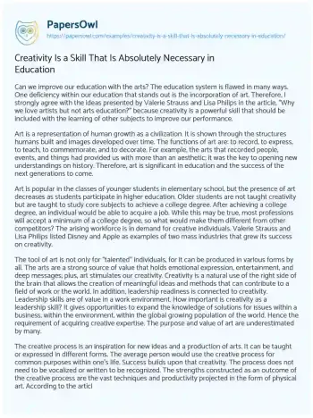Creativity Is a Skill That Is Absolutely Necessary in Education