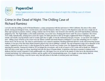 Crime in the Dead of Night: The Chilling Case of Richard Ramirez. (2024, Jan 09). Retrieved from https://hub.papersowl.com/examples/crime-in-the-dead-of-night-the-chilling-case-of-richard-ramirez/