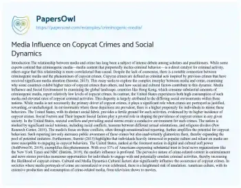 Media Influence on Copycat Crimes and Social Dynamics. (2019, Nov 24). Retrieved from https://hub.papersowl.com/examples/criminogenic-media/