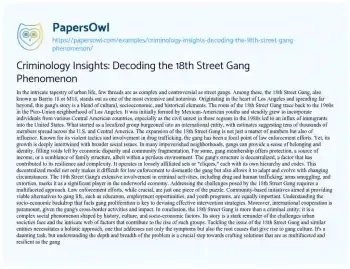 Criminology Insights: Decoding the 18th Street Gang Phenomenon. (2024, Feb 01). Retrieved from https://hub.papersowl.com/examples/criminology-insights-decoding-the-18th-street-gang-phenomenon/