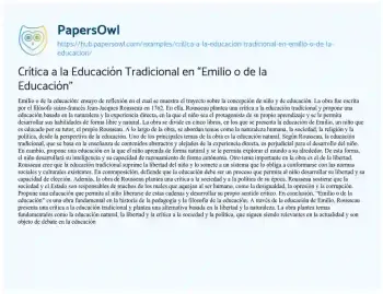 Crítica a la Educación Tradicional en “Emilio o de la Educación”. (2026, Feb 06). Retrieved from https://hub.papersowl.com/examples/critica-a-la-educacion-tradicional-en-emilio-o-de-la-educacion/