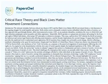 Critical Race Theory and Black Lives Matter Movement Connections. (2021, Jul 03). Retrieved from https://hub.papersowl.com/examples/critical-race-theory-guiding-the-path-of-black-lives-matter/