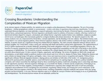 Crossing Boundaries: Understanding the Complexities of Mexican Migration. (2024, May 28). Retrieved from https://hub.papersowl.com/examples/crossing-boundaries-understanding-the-complexities-of-mexican-migration/