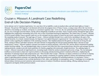 Cruzan v. Missouri: A Landmark Case Redefining End-of-Life Decision-Making. (2024, Jun 17). Retrieved from https://hub.papersowl.com/examples/cruzan-v-missouri-a-landmark-case-redefining-end-of-life-decision-making/