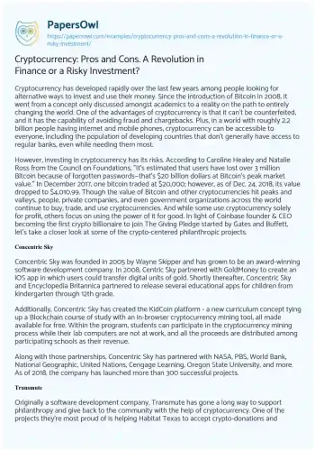 Cryptocurrency: Pros and Cons. A Revolution in Finance or a Risky Investment?. (2023, Jun 17). Retrieved from https://hub.papersowl.com/examples/cryptocurrency-pros-and-cons-a-revolution-in-finance-or-a-risky-investment/
