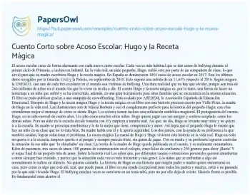 Cuento Corto sobre Acoso Escolar: Hugo y la Receta Mágica. (2026, Feb 06). Retrieved from https://hub.papersowl.com/examples/cuento-corto-sobre-acoso-escolar-hugo-y-la-receta-magica/